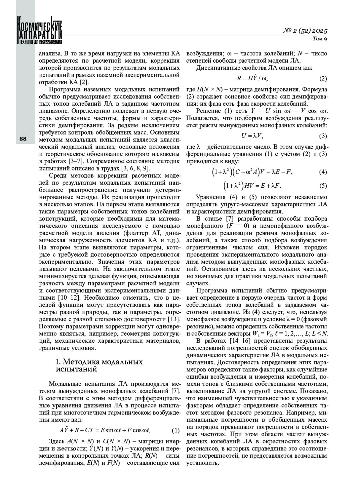 [2] Межин В. С., Обухов В. В. Практика применения модальных испытаний для целей верификации конечно-элементных моделей конструкции изделий ракетно–космической техники // Космическая техника и технологии. 2014. № 1 (4). С. 86–91.
