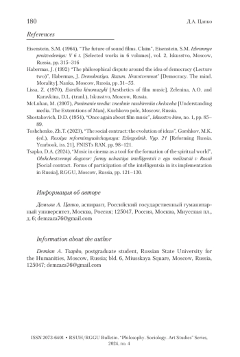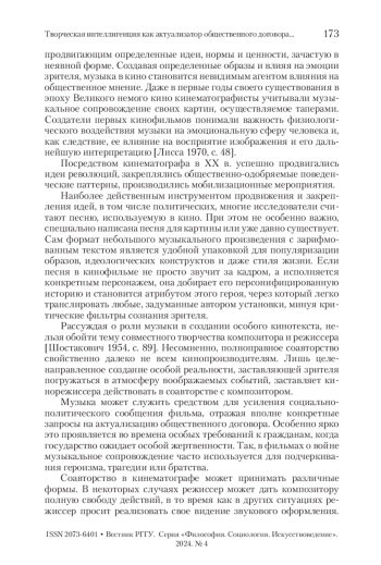 Ключевые фразы: ОБЩЕСТВЕННЫЙ ДОГОВОР, киноискусство, музыкальное сопровождение, социальная коммуникация, творческая интеллигенция
