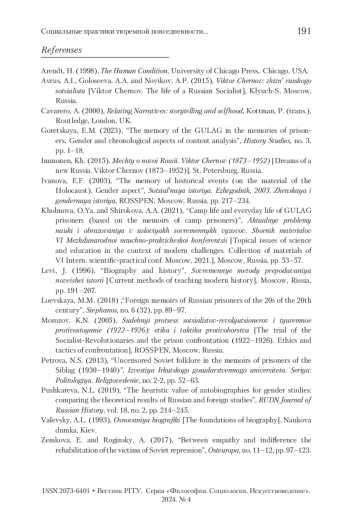 7. Лоевская 2018 - Лоевская М.М. Зарубежные воспоминания русских заключенных 20-х годов ХХ века // Stephanos. 2018. № 6 (32). С. 89-97. https://doi.org/10.24249/2309-9917-2018-32-6-89-97.