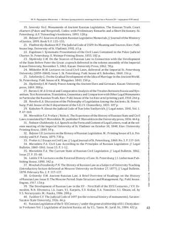 34. Морошкин Ф. А. Гражданское право по началам российского законодательства // Юридический вестник. 1860-1861. Вып. 15. С. 1-12.