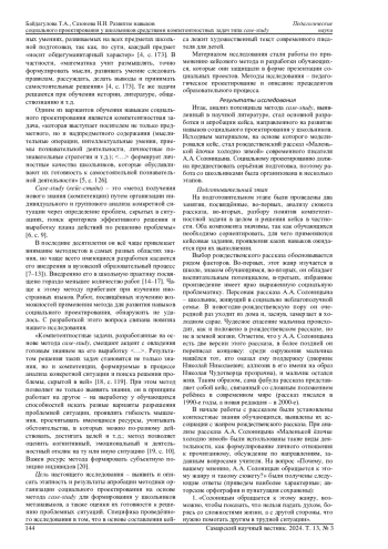 Статья: РАЗВИТИЕ НАВЫКОВ СОЦИАЛЬНОГО ПРОЕКТИРОВАНИЯ У ШКОЛЬНИКОВ СРЕДСТВАМИ КОМПЕТЕНТНОСТНЫХ ЗАДАЧ ТИПА CASE-STUDY (2024)