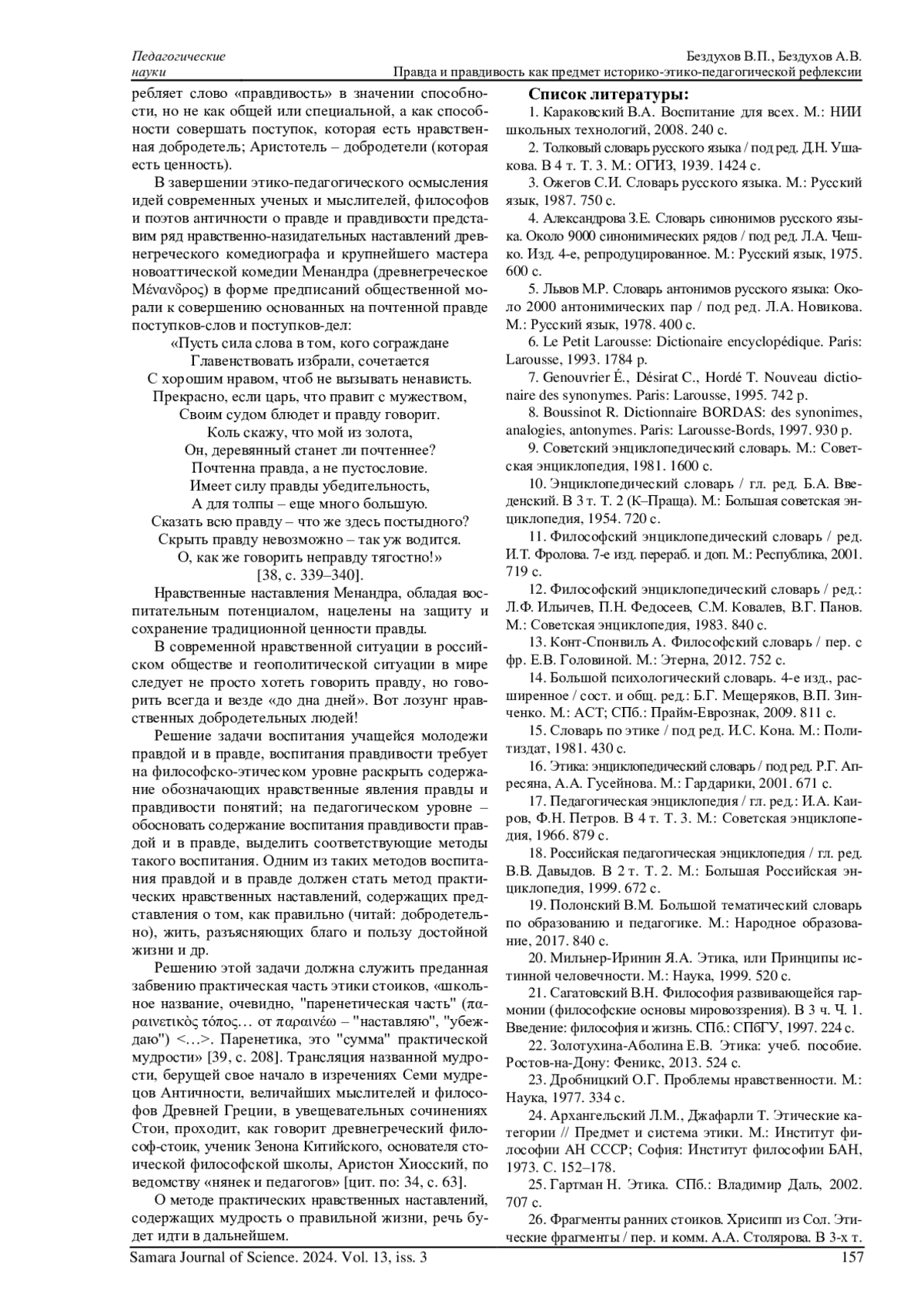 34. Бездухов В.П. О том, как научиться “черпать добро из себя”: уроки “воспитывающей” морали Демокрита в современном аксиолого-педагогическом пространстве // Известия Российской академии образования. 2024. № 2 (66). С. 59-75. DOI: 10.51944/20738498_2024_2_59 EDN: LFDKBB