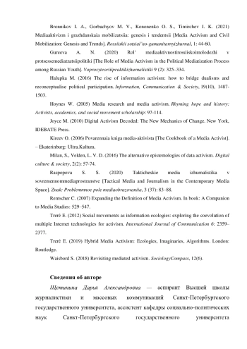 Ключевые фразы: медиаактивизм, цифровые технологии, ГРАЖДАНСКАЯ АКТИВНОСТЬ, альтернативные медиа, информационные практики