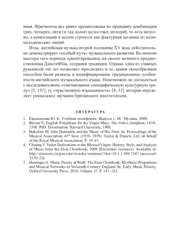 Статья: АНГЛИЙСКАЯ ПОЛИФОНИЧЕСКАЯ МУЗЫКА ВТОРОЙ ПОЛОВИНЫ XV ВЕКА: ОСОБЫЙ ПУТЬ (2024)