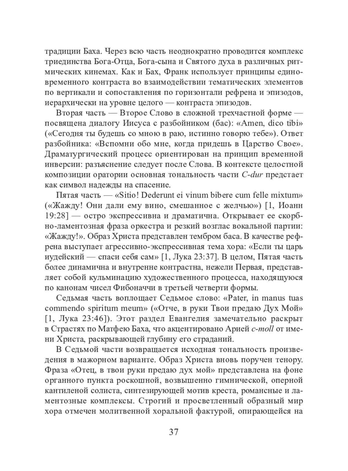 В исследованиях Пассионов И. С. Баха жанру речитатива всегда уделяется меньше внимания, чем другим номерам. На самом деле речитативы выполняют не только важную драматургическую роль, повествуя о событиях. Дж. Гардинер отмечает такие их черты, как «текучесть и драматическая сила партии Евангелиста» [1, 555]. Эту же мысль развивает и М. С. Друскин, объясняя ее тем, что «Бах вовсе не стремится к эпическому рассказу, он воспринимает Евангелиста как очевидца, который не может спокойно говорить о произошедшей драме, чему свидетелем был» [2, 54–55].