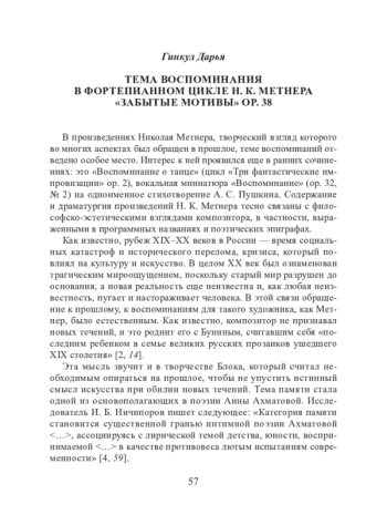 ГИНКУЛ Д. ТЕМА ВОСПОМИНАНИЯ В ФОРТЕПИАННОМ ЦИКЛЕ Н. К. МЕТНЕРА «ЗАБЫТЫЕ МОТИВЫ» OP. 38 // ИССЛЕДОВАНИЯ МОЛОДЫХ МУЗЫКОВЕДОВ. 2024. № 8
