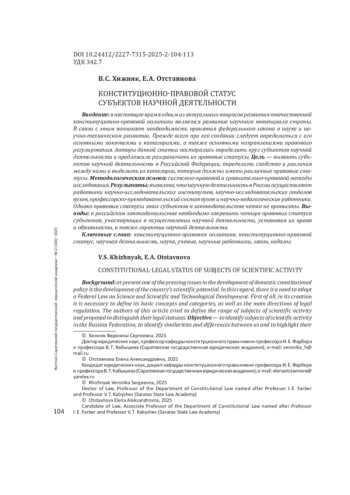 7. Васильев А., Шпоппер Д., Печатнова Ю. Правовой статус коллективных субъектов научной деятельности // Юрислингвистика. 2021. № 21(32). С. 5-10. EDN: PUNJCN