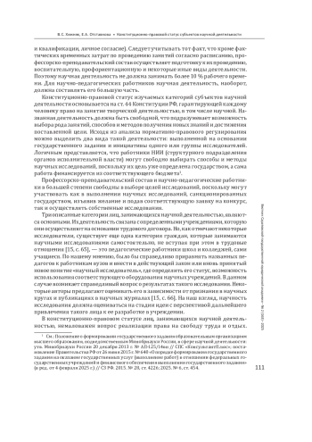 11. Ломакина Л. А. Научный потенциал страны и некоторые проблемы правового регулирования труда научных работников // Журнал российского права. 2020. № 8. С. 84-92. EDN: EFBBAR