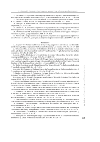 10. Васильев А.А., Путило Н. В. Правовой статус ученого как фактор научно-технологического развития России // Управление наукой: теория и практика. 2021. Т. 3, № 2. С. 57-71. EDN: HOEZQT