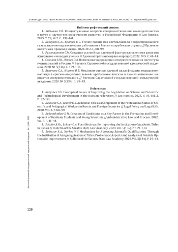 КРОТОВ К. С. О НЕКОТОРЫХ ВОПРОСАХ ИНСТИТУТА УЧЕНЫХ ЗВАНИЙ В СОВРЕМЕННЫХ УСЛОВИЯХ // ВЕСТНИК САРАТОВСКОЙ ГОСУДАРСТВЕННОЙ ЮРИДИЧЕСКОЙ АКАДЕМИИ. 2025. № 2 (163)