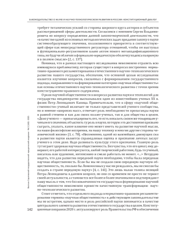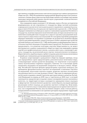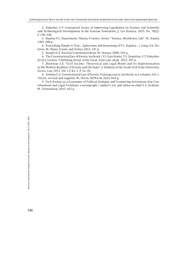 Статья: ФОРМИРОВАНИЕ КАТЕГОРИИ «НАУЧНАЯ ОБЩЕСТВЕННОСТЬ» КАК ОСНОВЫ ОТЕЧЕСТВЕННОГО НАУЧНО-ТЕХНОЛОГИЧЕСКОГО РАЗВИТИЯ: КОНСТИТУЦИОННО-ПРАВОВОЙ АСПЕКТ (2025)