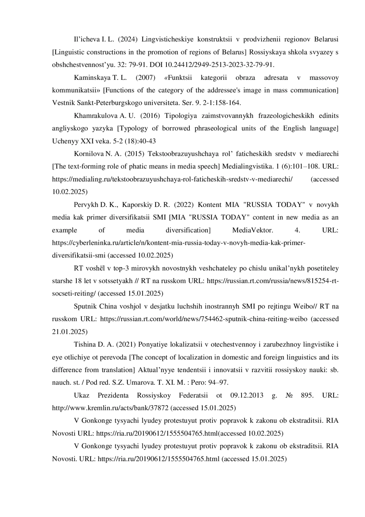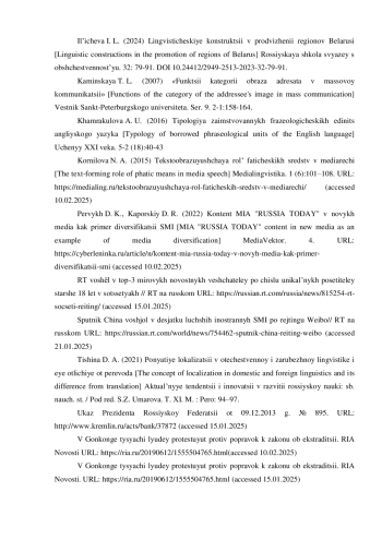 13. Ильичева И. Л. Лингвистические конструкции в продвижении регионов Беларуси // Российская школа связей с общественностью. 2024. № 32. С. 79-91. DOI: 10.24412/2949-2513-2023-32-79-91