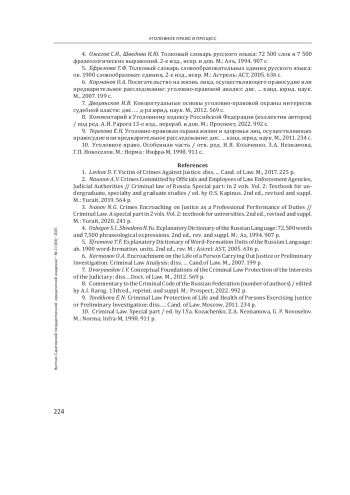 6. Карманов О. А. Посягательство на жизнь лица, осуществляющего правосудие или предварительное расследование: уголовно-правовой анализ: дис.... канд. юрид. наук. М., 2007. 199 с. EDN: NOXUOZ