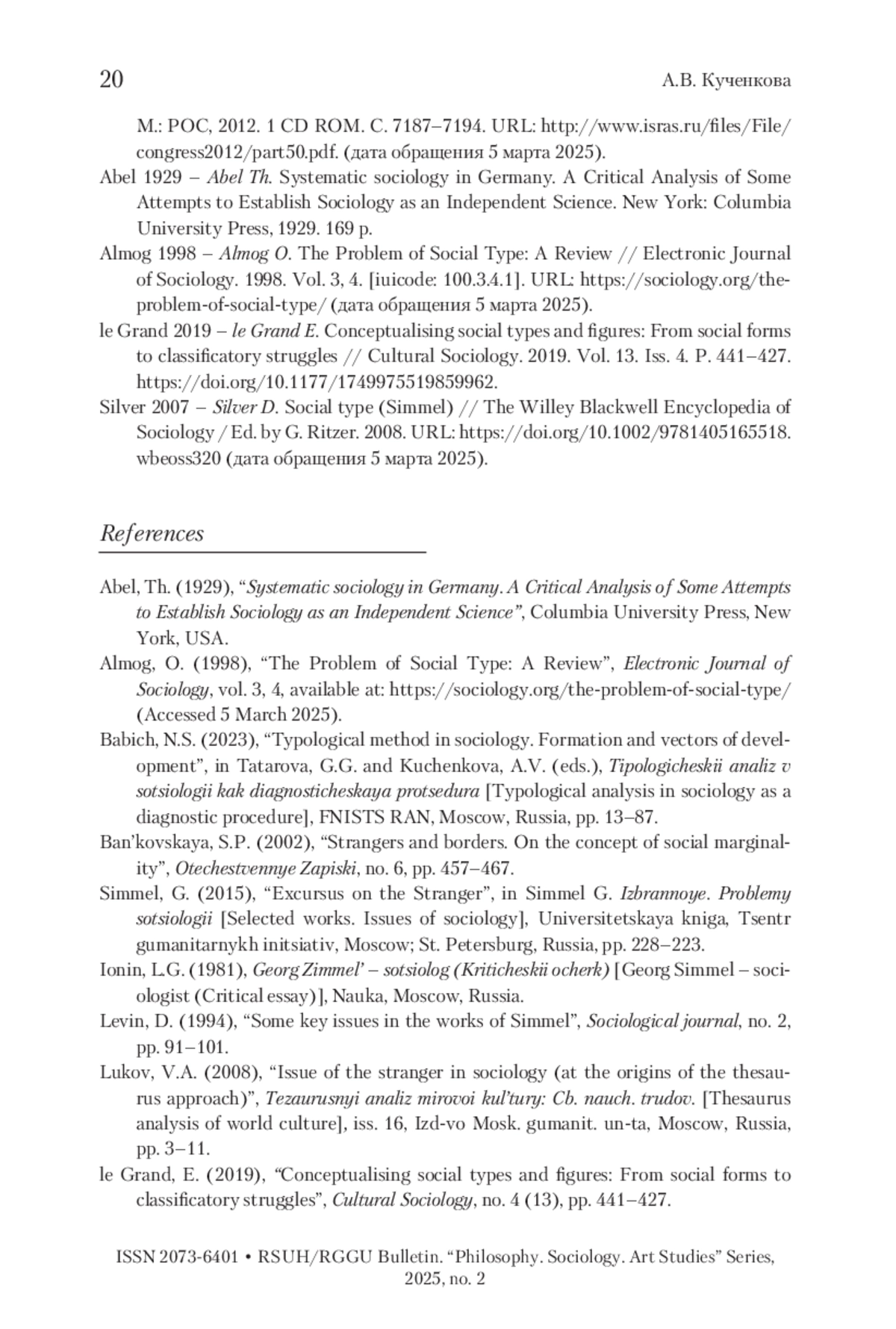9. Almog 1998 - Almog O. The Problem of Social Type: A Review // Electronic Journal of Sociology. 1998. Vol. 3, 4. [iuicode: 100.3.4.1]. URL: https://sociology.org/theproblem-of-social-type (дата обращения 5 марта 2025).
