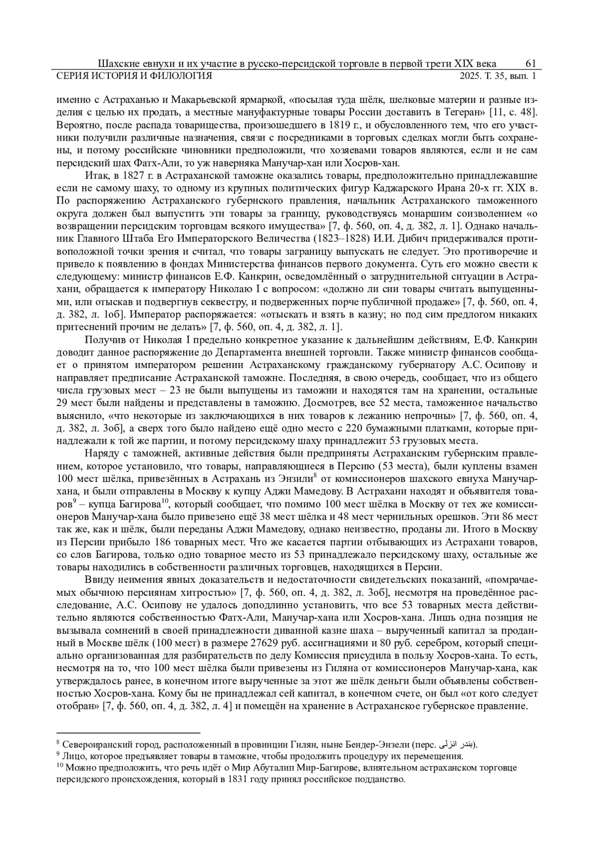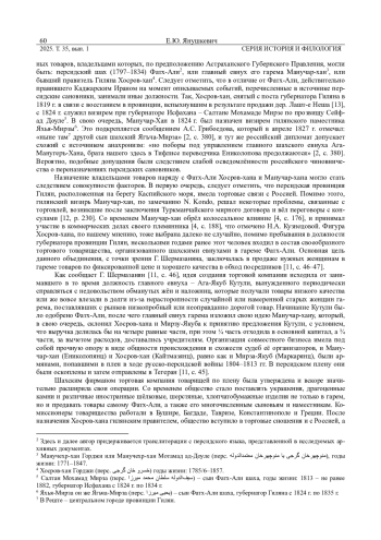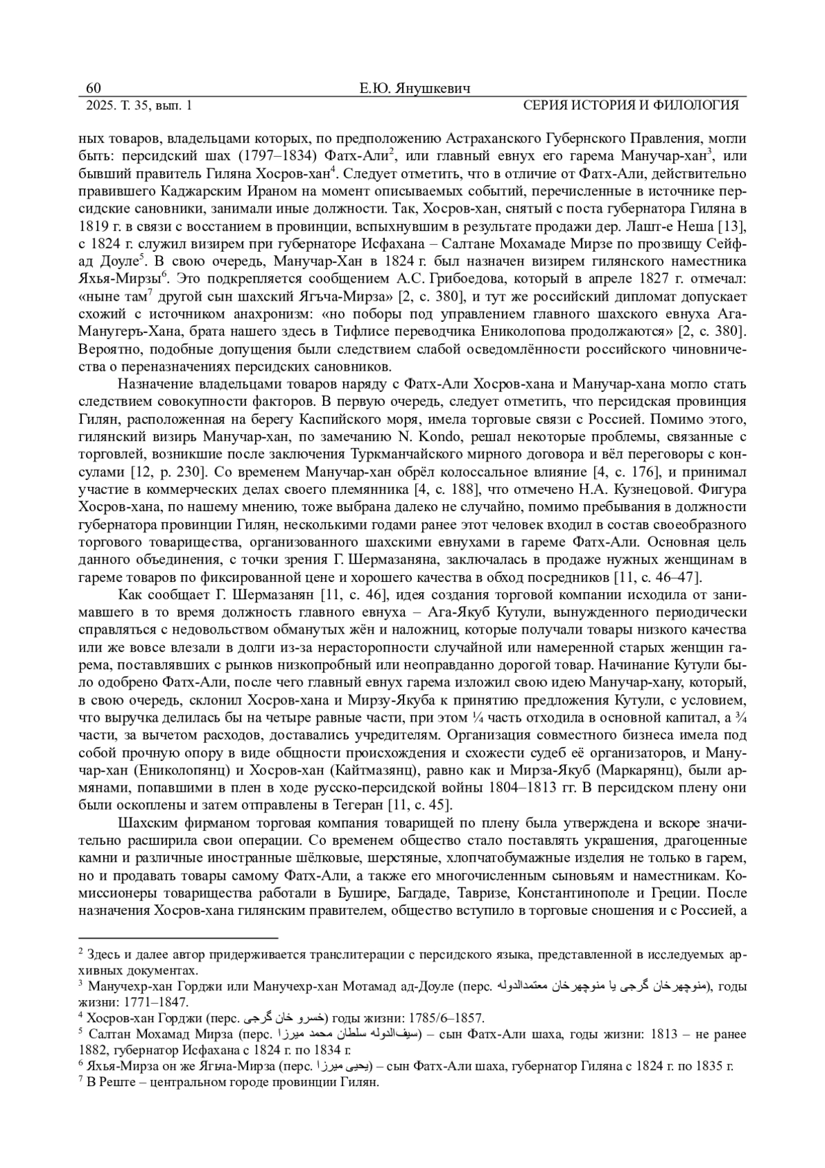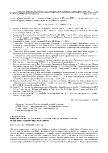 ЯНУШКЕВИЧ Е. Ю. ШАХСКИЕ ЕВНУХИ И ИХ УЧАСТИЕ В РУССКО-ПЕРСИДСКОЙ ТОРГОВЛЕ В ПЕРВОЙ ТРЕТИ XIX ВЕКА // ВЕСТНИК УДМУРТСКОГО УНИВЕРСИТЕТА. СЕРИЯ: ИСТОРИЯ И ФИЛОЛОГИЯ. 2025. Т. 35 № 1