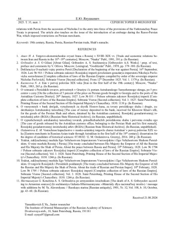 Статья: ШАХСКИЕ ЕВНУХИ И ИХ УЧАСТИЕ В РУССКО-ПЕРСИДСКОЙ ТОРГОВЛЕ В ПЕРВОЙ ТРЕТИ XIX ВЕКА (2025)