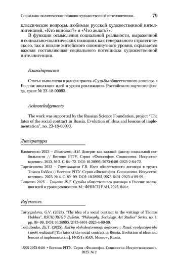 2. Тартыгашева 2023 - Тартыгашева Г.В. Идея общественного договора в трудах Томаса Гоббса // Вестник РГГУ. Серия «Философия. Социология. Искусствоведение». 2023. № 4. С. 89-99. https://doi.org/10.28995/2073-6401-2023-4-89-99.