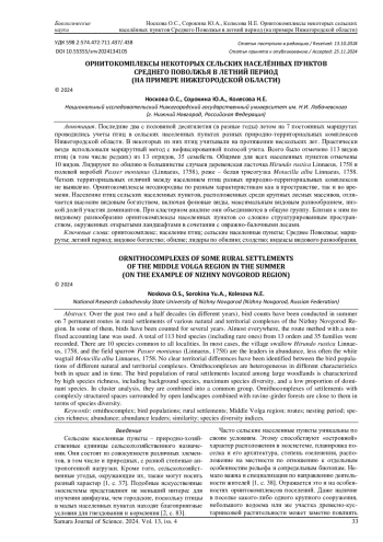Статья: ОРНИТОКОМПЛЕКСЫ НЕКОТОРЫХ СЕЛЬСКИХ НАСЕЛЁННЫХ ПУНКТОВ СРЕДНЕГО ПОВОЛЖЬЯ В ЛЕТНИЙ ПЕРИОД (НА ПРИМЕРЕ НИЖЕГОРОДСКОЙ ОБЛАСТИ) (2024)