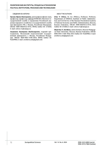 Orlova I.V., Vasilenko L.A., Ilyicheva L.E., Fedorova A.S. Formation of civil society in Russia: Strategies and management. Moscow: Analitik, 2015. 400 p.