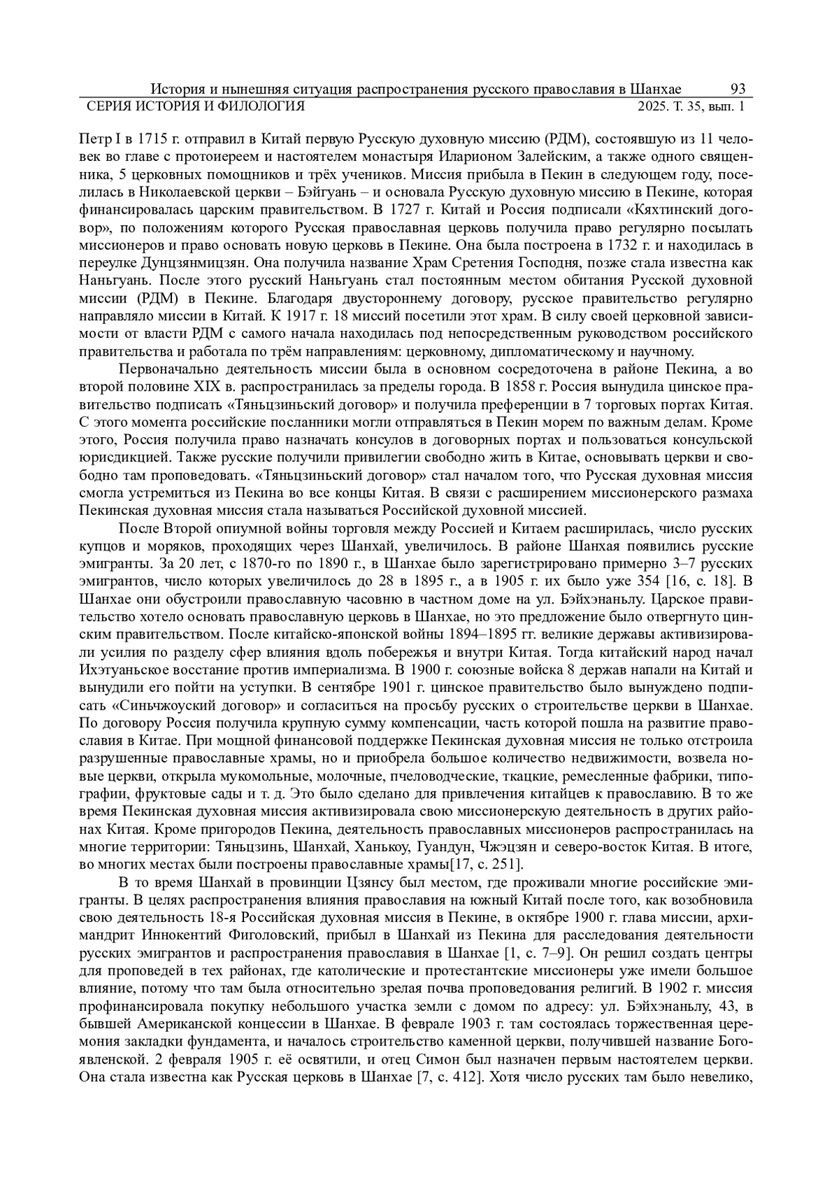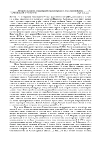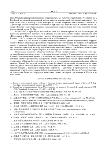 На основе исторических следов русской культуры в Шанхае, исторических источников и исследований на местах, в данной статье рассматривается исторический контекст русского православия в китайском городе Шанхай, показывается его нынешняя ситуация, и в определённой степени демонстрируется обмен между китайской и русской культурами в Шанхае. Распространение православия в Шанхае пережило три исторических периода: период появления, период расцвета и период упадка. Оно способствовало интернационализации и многообразию культуры Шанхая в Новейшее время. Хотя число православных христиан в Шанхае в настоящее время невелико, и существующие православные церкви ещё не восстановили свои первоначальные функции, однако с усилением религиозных обменов между Китаем и Россией, русское православие, вероятно, расширит своё религиозное влияние в Китае.