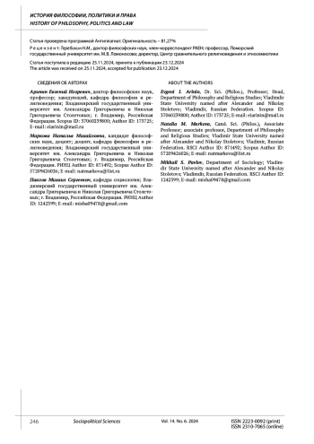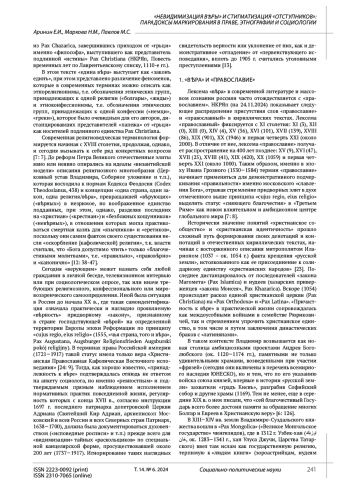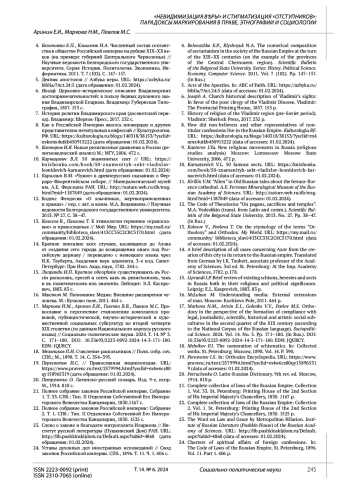 17. Маркова Н.М., Аринин Е.И., Голенко В.В., Павлов М.С. Православие в перспективе становления комплаенса правовой, публицистической, научно-исторической и художественной социальных субкультур во второй четверти XIX столетия (по данным Национального корпуса русского языка) // Социально-политические науки. 2024. Т. 14. № 3. С. 171-180. DOI: 10.33693/2223-0092-2024-14-3-171-180 EDN: JQURCY