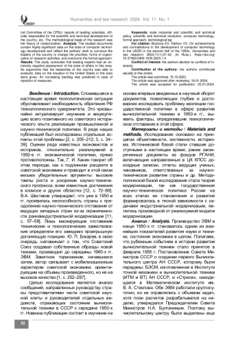 Материалы и методы. Исследование построено на анализе ставших доступными в настоящее время, ранее засекреченных документов, включающих направленные в ЦК КПСС докладные записки, отчеты ведущих ученых, чиновников, ответственных за научно-техническое развитие страны и др. Методологической базой исследования стала теория модернизации.