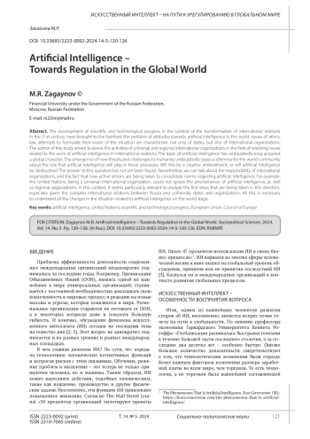 6. Петроченков И.А. Перспективы защиты прав человека в контексте принятия Евросоюзом регламента об искусственном интеллекте // Гражданин. Выборы. Власть. 2024. № 2 (32). С. 104-115. EDN: GDFAPN
