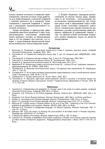 Введение. Статья посвящена описанию вариативности фонетической структуры заимствований в кхмерском языке. Данная тема имеет длительную традицию как в отечественном, так и зарубежном языкознании. Исследованиями в указанной области занимались такие видные ученые, как И. Д. Кленин, Е. Д. Поливанов, Н. С. Трубецкой. В кхмеристике тематика изучения вопросов языковых контактов и адаптации заимствованной лексики является неизученной.