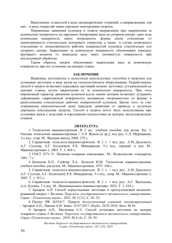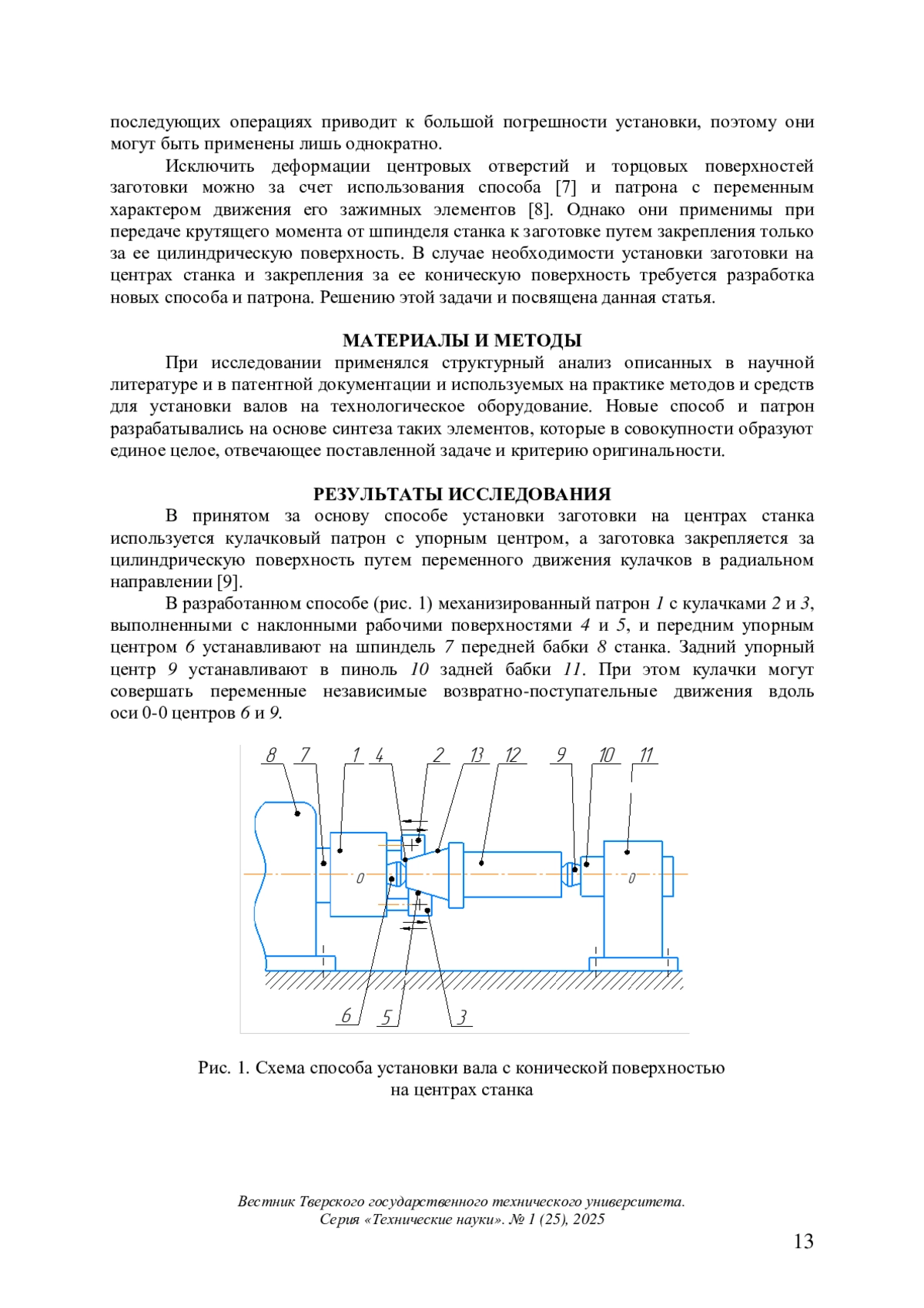 АРХАРОВ А. П. УСТАНОВКА ВАЛА С КОНИЧЕСКОЙ ПОВЕРХНОСТЬЮ НА ЦЕНТРАХ СТАНКА // ВЕСТНИК ТВЕРСКОГО ГОСУДАРСТВЕННОГО ТЕХНИЧЕСКОГО УНИВЕРСИТЕТА. СЕРИЯ: ТЕХНИЧЕСКИЕ НАУКИ. 2025. № 1 (25)