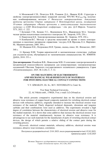 3. Берент В.Я. Материалы и свойства электрических контактов в устройствах железнодорожного транспорта. М.: Интекст, 2005. 408 с. EDN: XATECV
