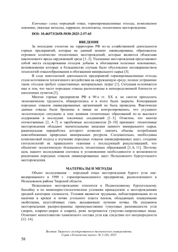 За последнее столетие на территории РФ из-за хозяйственной деятельности горных предприятий, которые на данный момент ликвидированы, образовалось огромное количество техногенных месторождений, которые являются объектами накопленного вреда окружающей среде [1–3]. Указанные месторождения представляют собой места складирования отходов добычи и обогащения полезных ископаемых, возникновение которых в большинстве случаев было обусловлено несовершенством технологий отвалообразования и обогащения минерального сырья