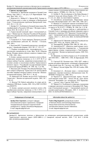 16. Чернов О.А. Отмена рабства и работорговли в Средней Азии и трансфер российских правовых норм в программе и практике Н.В. Чарыкова [Электронный ресурс] // Электронный научно-образовательный журнал “История”. 2024. Т. 1, № 9 (143). DOI: 10.18254/s207987840032417-7 EDN: CTMWAL