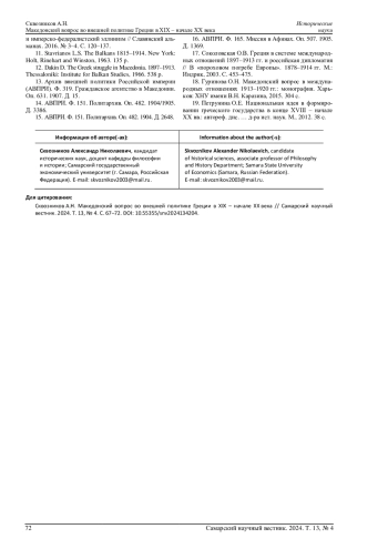 СКВОЗНИКОВ А. Н. МАКЕДОНСКИЙ ВОПРОС ВО ВНЕШНЕЙ ПОЛИТИКЕ ГРЕЦИИ В XIX - НАЧАЛЕ XX ВЕКА // САМАРСКИЙ НАУЧНЫЙ ВЕСТНИК. 2024. ТОМ 13, № 4