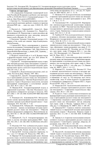 12. Румянцева Н.М., Рубцова Д.Н. Этноориентированное обучение - важная составляющая методики преподавания русского языка как иностранного // Известия Южного федерального университета. Филологические науки. 2019. № 1. С. 196-207. DOI: 10.23683/1995-0640-2019-1-196-207