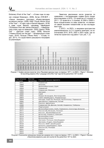 Введение. Статья посвящена комплексному системному анализу социолингвистических проектов типа «Языковая единица года» в различных лингвокультурах. Существует ряд исследований, касающихся темы социолингвистических проектов «Слово года», которые изучают активизацию лексикотематических групп в рамках календарного года. Актуальность данного исследования основана на отсутствии научных работ, дающих комплексное представление о социокультурных проектах, направленных на выявление механизмов и приоритетов языковой рефлексии через иные семантические единицы. Целью исследования является фиксирование и анализ проектов, инициируемых разными странами в период с 1971 года, начала запуска первого проекта в Германии, по настоящий момент, выявление закономерностей и отличий. Новизна исследования заключается в рассмотрении указанных социолингвистических проектов в более широком охвате лингвокультур и анализе различных семиотических единиц, отражающих влияние экстралингвистических процессов на языковое сознание.