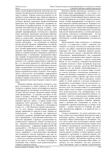 Статья: ПЕДАГОГИЧЕСКИЕ УСЛОВИЯ ФОРМИРОВАНИЯ ЭСТЕТИЧЕСКОГО СОЗНАНИЯ В ПРОЦЕССЕ ВОКАЛЬНО-ХОРОВОЙ ДЕЯТЕЛЬНОСТИ (2024)