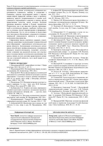 ЧЖАН Л. ПЕДАГОГИЧЕСКИЕ УСЛОВИЯ ФОРМИРОВАНИЯ ЭСТЕТИЧЕСКОГО СОЗНАНИЯ В ПРОЦЕССЕ ВОКАЛЬНО-ХОРОВОЙ ДЕЯТЕЛЬНОСТИ // САМАРСКИЙ НАУЧНЫЙ ВЕСТНИК. 2024. ТОМ 13, № 4
