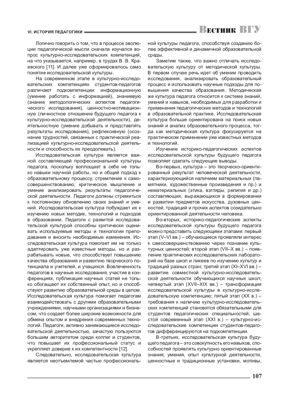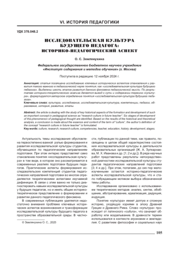 Статья: ИССЛЕДОВАТЕЛЬСКАЯ КУЛЬТУРА БУДУЩЕГО ПЕДАГОГА: ИСТОРИКОПЕДАГОГИЧЕСКИЙ АСПЕКТ (2025)