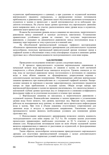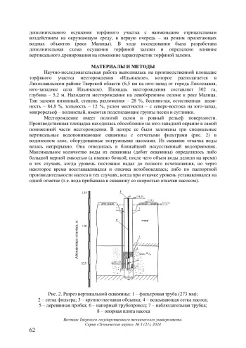 Ключевые фразы: торф, торфяная залежь, осушение, вертикальный дренаж, гидрологический режим, уровень грунтовых вод, напор, КОЭФФИЦИЕНТ ФИЛЬТРАЦИИ, ДЕБИТ СКВАЖИНЫ, вертикальная фильтрация