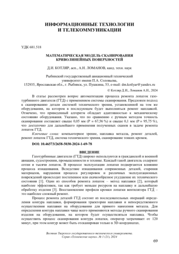 Статья: МАТЕМАТИЧЕСКАЯ МОДЕЛЬ СКАНИРОВАНИЯ КРИВОЛИНЕЙНЫХ ПОВЕРХНОСТЕЙ (2024)