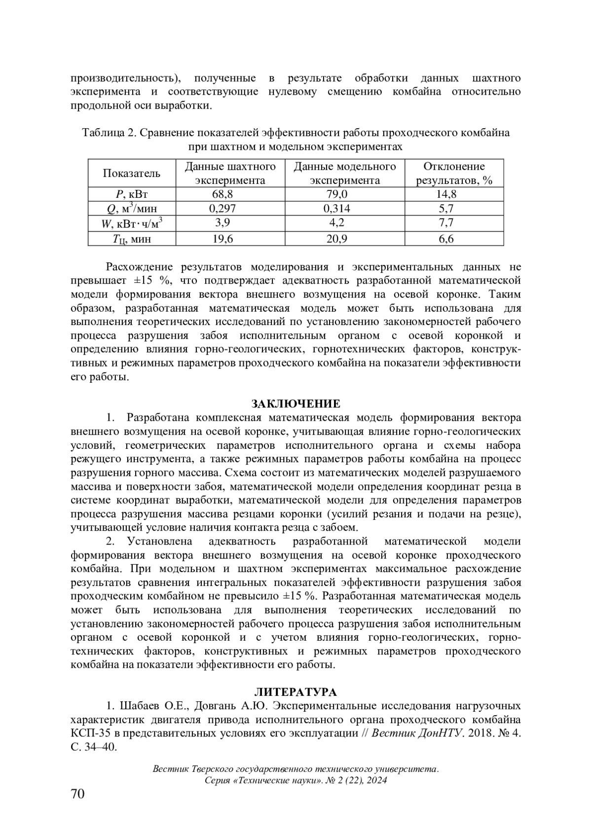 2. Шабаев О.Е., Довгань А.Ю. Влияние позиционирования проходческого комбайна КСП-35 в проходческом забое на эффективность его функционирования // Вестник ДонНТУ. 2020. № 3 (21). С. 35-42. EDN: PLHZKE