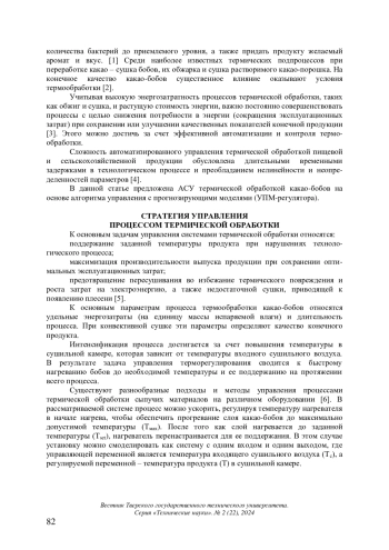 Ключевые фразы: упм-регулятор, ТЕРМИЧЕСКАЯ ОБРАБОТКА, какао, автоматизированный контроль, стратегия контроля, математическое моделирование