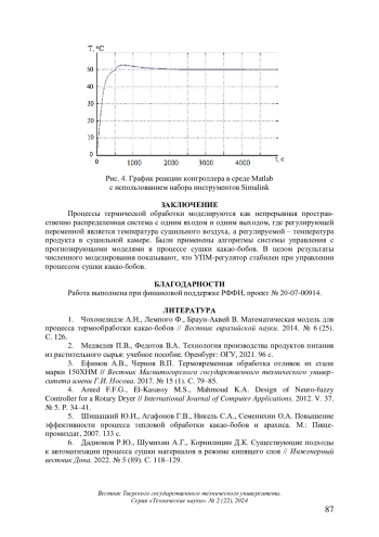 Статья: АВТОМАТИЗИРОВАННОЕ УПРАВЛЕНИЕ ПРОЦЕССОМ ТЕРМООБРАБОТКИ КАКАО-БОБОВ С ПОМОЩЬЮ АЛГОРИТМА С ПРОГНОЗИРУЮЩИМИ МОДЕЛЯМИ (2024)