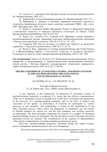 24. Burdo G. Basic Approaches to Creating Automated Design and Control Systems in a Machine-Building Industry // International Conference on Intelligent Information Technologies for Industry. Cham: Springer International Publishing. 2019. P. 281-288.