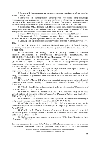 15. Velinsky S.A. Design and mechanics of multi-lay wire strands // Transactions of the ASME. 1988. V. 110. P. 152-160.