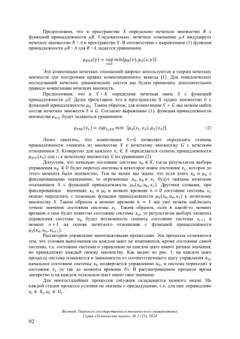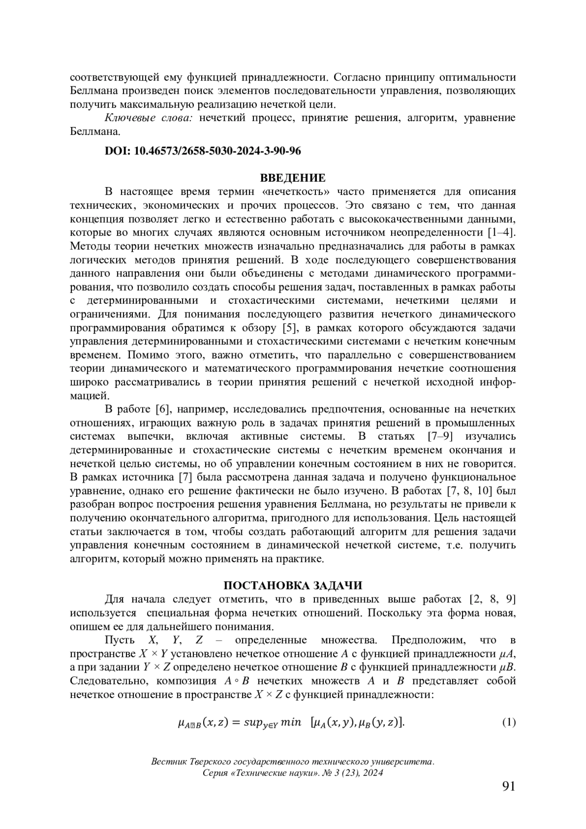 В настоящее время термин «нечеткость» часто применяется для описания технических, экономических и прочих процессов. Это связано с тем, что данная концепция позволяет легко и естественно работать с высококачественными данными, которые во многих случаях являются основным источником неопределенности [1–4]. Методы теории нечетких множеств изначально предназначались для работы в рамках логических методов принятия решений. В ходе последующего совершенствования данного направления они были объединены с методами динамического программирования, что позволило создать способы решения задач, поставленных в рамках работы с детерминированными и стохастическими системами, нечеткими целями и ограничениями. Для понимания последующего развития нечеткого динамического программирования обратимся к обзору [5], в рамках которого обсуждаются задачи управления детерминированными и стохастическими системами с нечетким конечным временем. Помимо этого, важно отметить, что параллельно с совершенствованием теории динамического и математического программирования нечеткие соотношения широко рассматривались в теории принятия решений с нечеткой исходной информацией