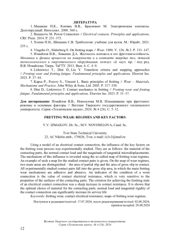 Статья: ИЗНАШИВАНИЕ ПРИ ФРЕТТИНГЕ: РЕЖИМЫ И ОСНОВНЫЕ ФАКТОРЫ (2024)