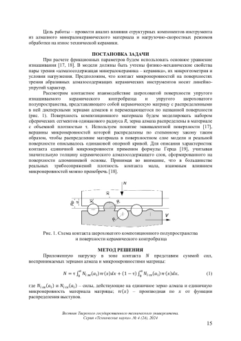 Ключевые фразы: абразивный алмазный инструмент, алмазная минералокерамика, обработка керамики, модель контактного взаимодействия, производительность шлифования, износ алмазного инструмента