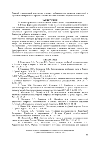 2. Мисников О.С., Копенкина Л.В. Возникновение торфяного дела в России // Горный журнал. 2020. № 2. С. 95-99. EDN: BIDCNT
