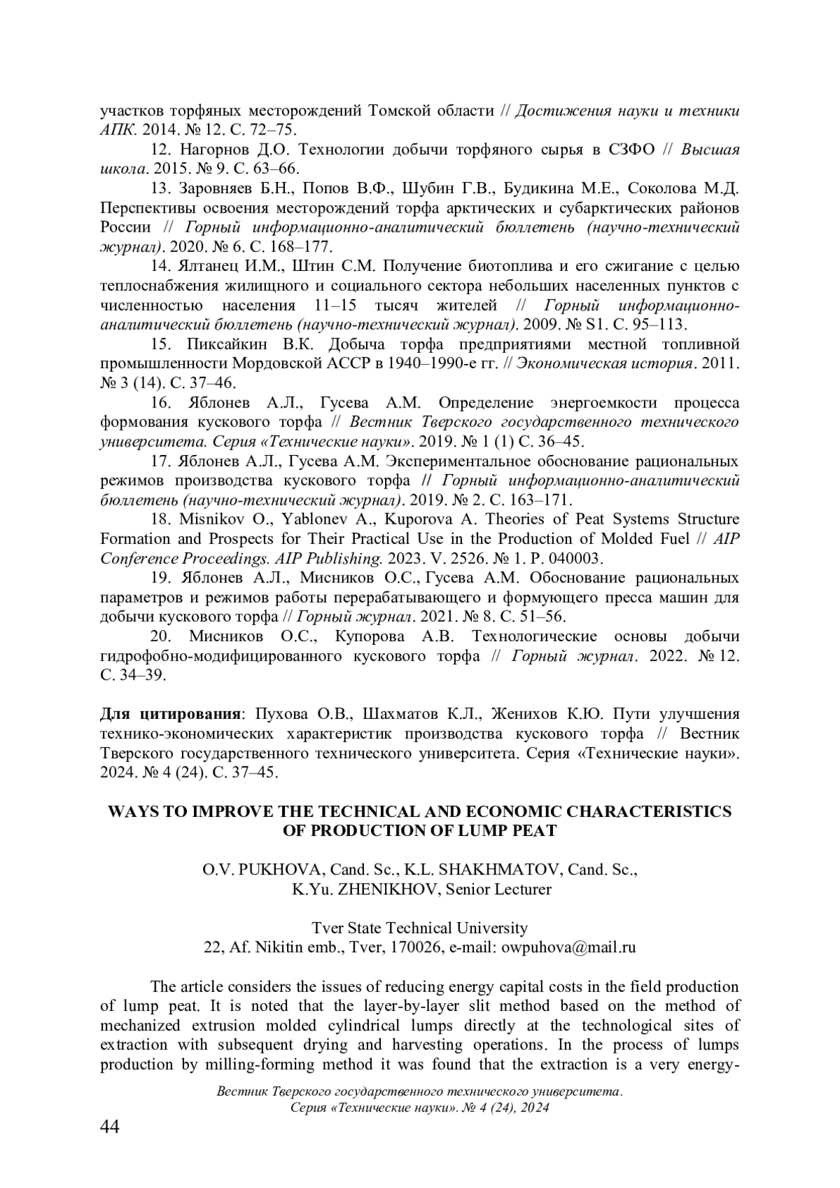 18. Misnikov O., Yablonev A., Kuporova A. Theories of Peat Systems Structure Formation and Prospects for Their Practical Use in the Production of Molded Fuel // AIP Conference Proceedings. AIP Publishing. 2023. V. 2526. № 1. P. 040003. EDN: EQWHBJ